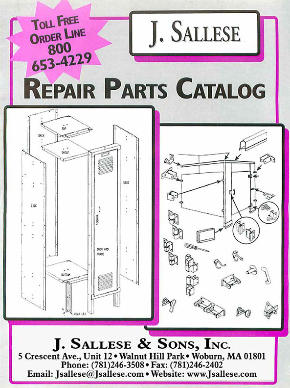 J. Sallese & Sons stocks many different parts and accessories for lockers and rest room partitions. We are an authorized distributor for Master Lock Company and Zephyr Lock Company. In addition, we offer a full line of replacement parts, including furniture glides and security door latches. Click on our Repair Parts Catalog below to shop or browse our complete listing of locker and restroom partition repair parts.