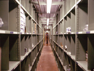 Single Rivet high density shelving uses single rivet beams on intermediate levels, and double rivet beams at the top and bottom for rigidity. For units up to 48 " wide.
